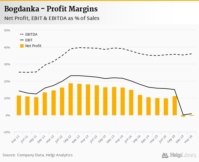 Bogdanka made a net profit of PLN 54.1 mil with revenues of PLN 421 mil in 1Q2016, up by 66.3% and down by 1.8%, respectively, compared to the previous year.