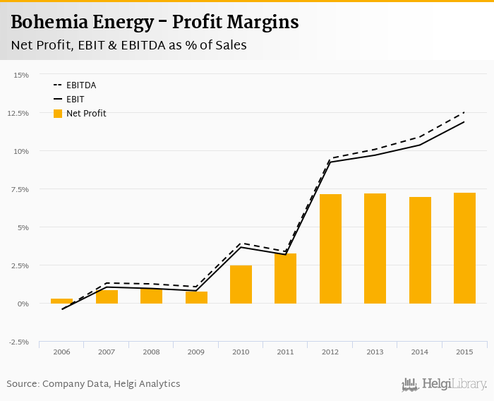 Bohemia Energy made a net profit of CZK 592 mil with revenues of CZK 8,121 mil in 2015, up by 0.305% and down by 3.88%, respectively, compared to the previous year.