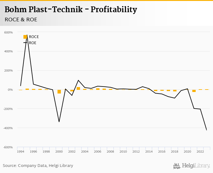 Bohm Plast-Technik made a net profit of CZK 9.23 mil in 2023, up 34.4% compared to the previous year. Historically, between 1994 and 2023, the company's net profit reached a high of CZK 14.0 mil in 2006 and a low of CZK -38.5 mil in 2021.