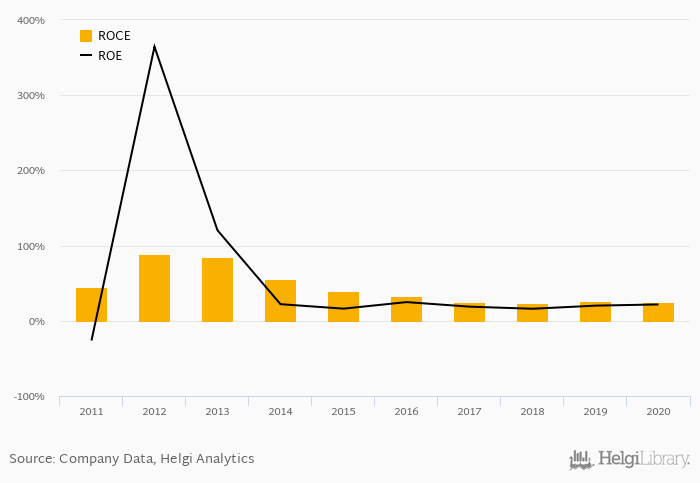 The result implies a return on equity of 21.8% and a return on invested capital of 25.6% in 2020. That is compared to an average of 20.3% and 26.7% over the last five years.