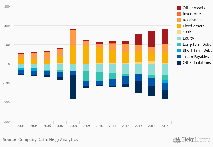 Net debt against equity is down 0.227 pp from five years ago (0.842). The ratio against EBITDA decreased from 1.86x seen in 2010 to 1.52x.