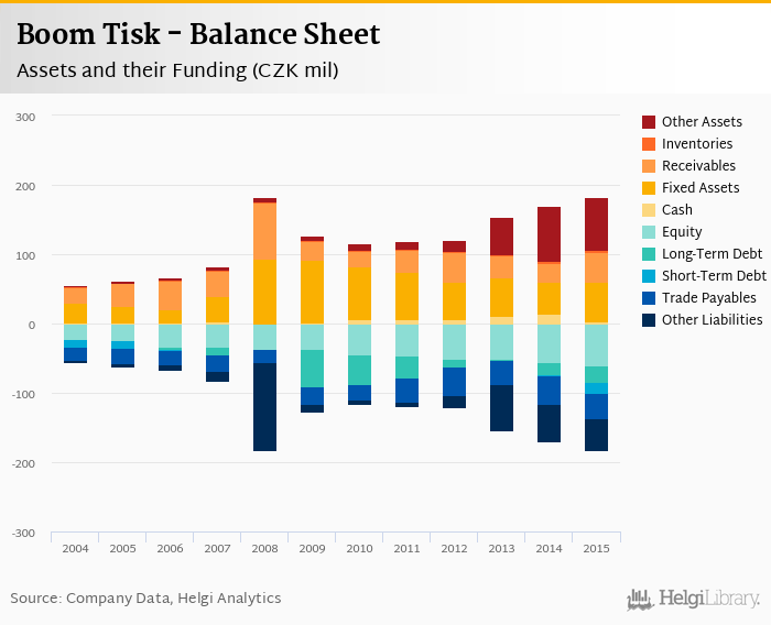 Boom Tisk's total assets reached CZK 183 mil at the end of 2015, up 7.28% compared to the previous year.