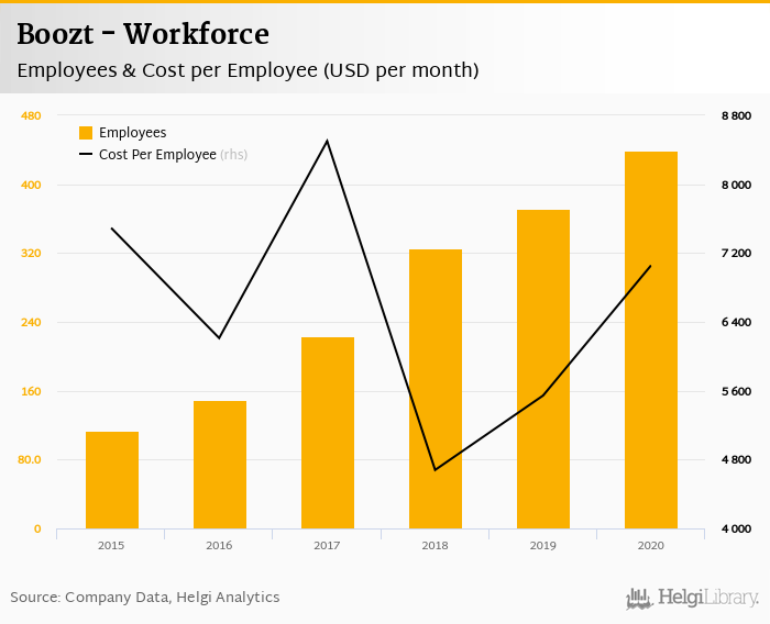 Boozt employed 439 employees in 2020, up 18.3% compared to the previous year. Historically, between 2011 and 2020, the firm's workforce hit a high of 439 employees in 2020 and a low of 113 employees in 2015.