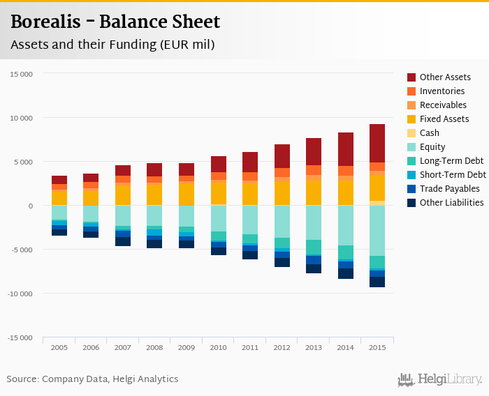 Borealis's total assets reached EUR 9,261 mil at the end of 2015, up 10.9% compared to the previous year.