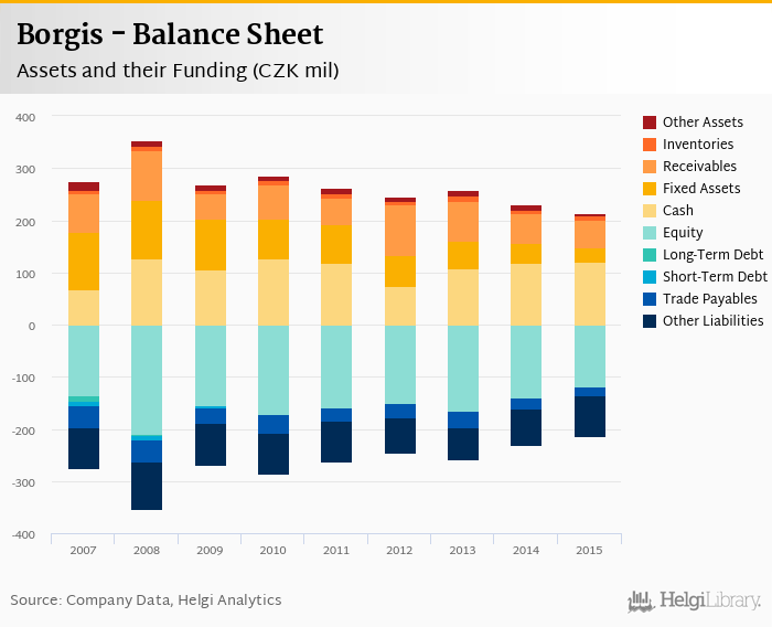 Borgis's total assets reached CZK 213 mil at the end of 2015, down 7.93% compared to the previous year.