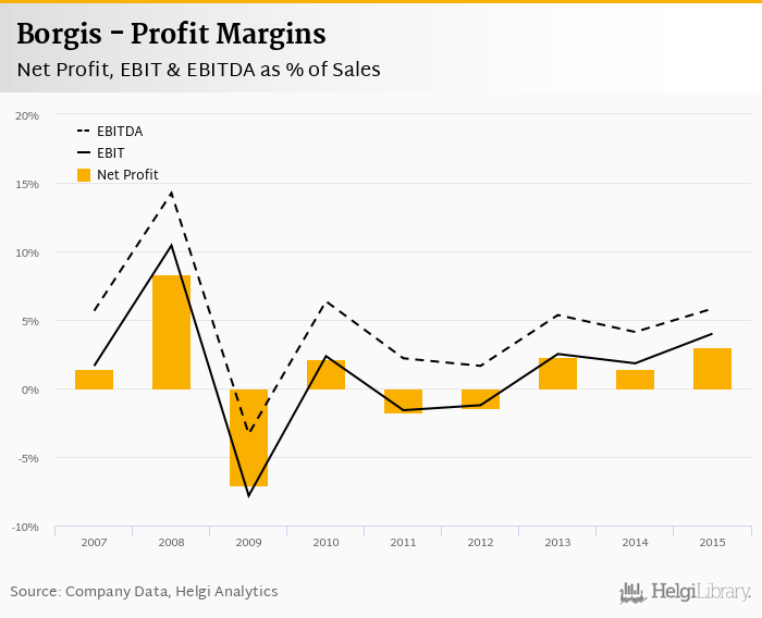 Borgis made a net profit of CZK 19.4 mil with revenues of CZK 641 mil in 2015, up by 104% and down by 1.78%, respectively, compared to the previous year.