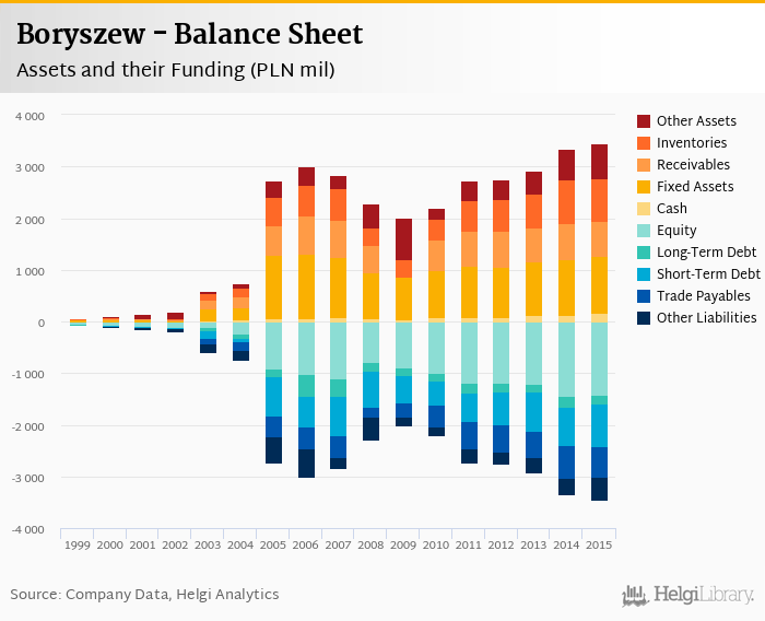 Boryszew's total assets reached PLN 3,453 mil at the end of 2015, up 3.06% compared to the previous year.