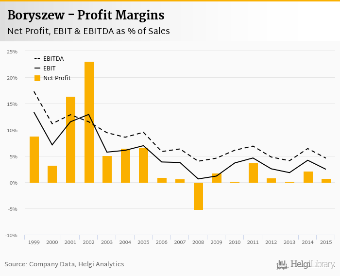 On the operating level, the EBITDA margin reached 4.58% and EBIT amounted to 2.45% of sales in 2015.