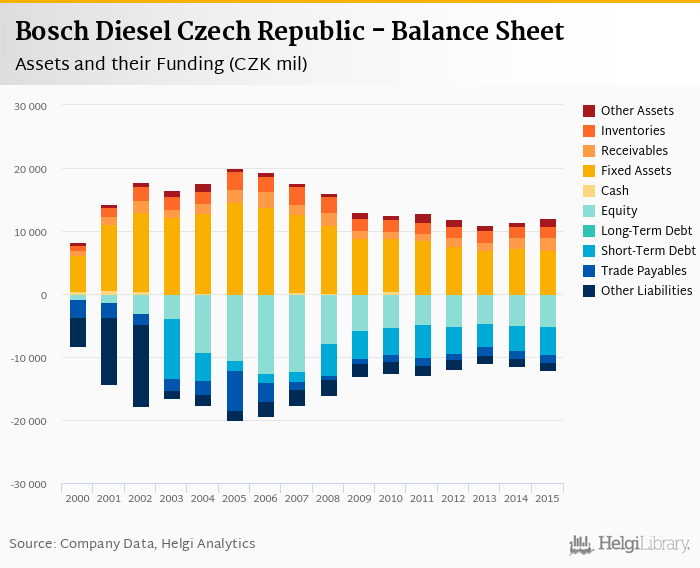 Bosch Diesel Czech Republic's total assets reached CZK 12,127 mil at the end of 2015, up 6.48% compared to the previous year.