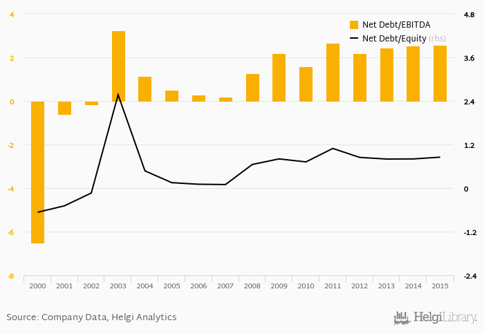 Historically, the firm’s net debt to equity reached a high of 2.57 in 2003 and a low of -0.666 in 2000 between 2000 and 2015. The average for the last five years was 0.879%.