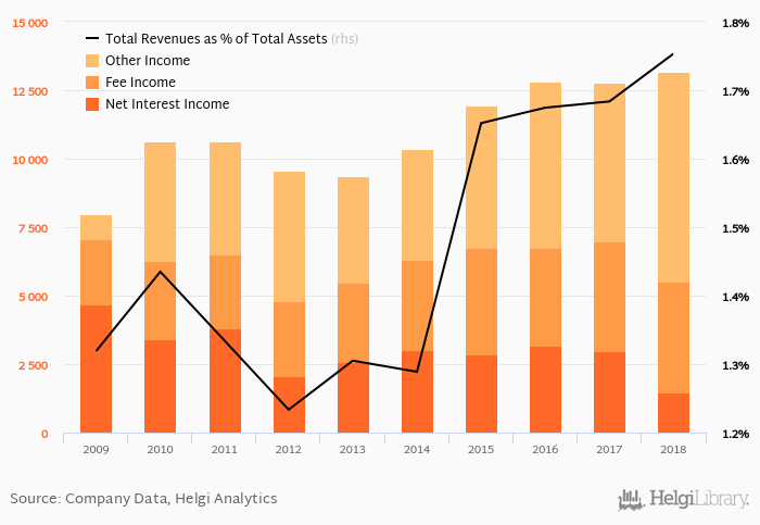 Bank's total revenues accounted for 1.75% total assets in 2018, up from 1.68% a year earlier.