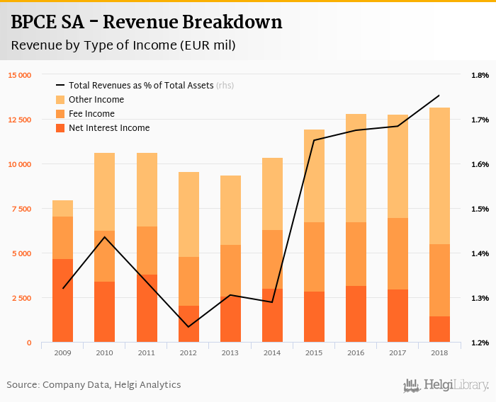 BPCE SA generated total banking revenues of EUR 13,178 mil in 2018, up 3.04% compared to the previous year.