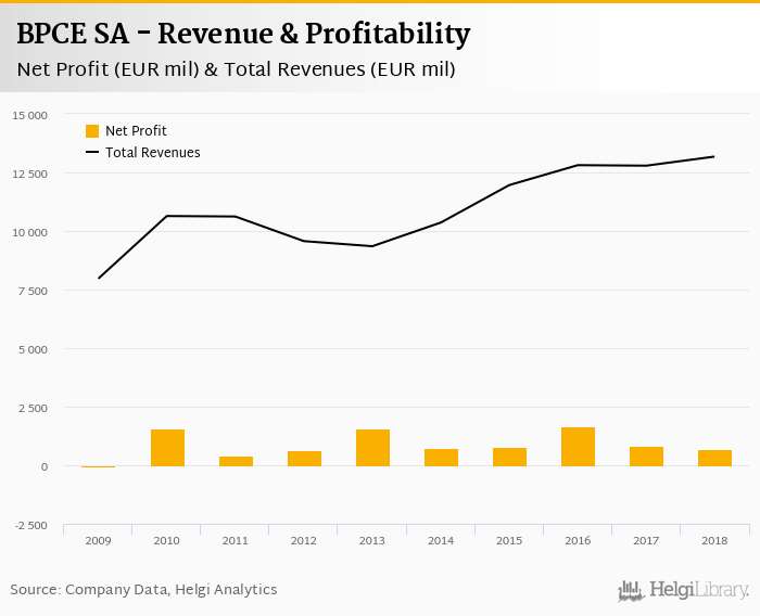 BPCE SA made a net profit of EUR 685 mil under revenues of EUR 13,178 mil in 2018, up -18.9% and 3.04% respectively compared to the previous year.