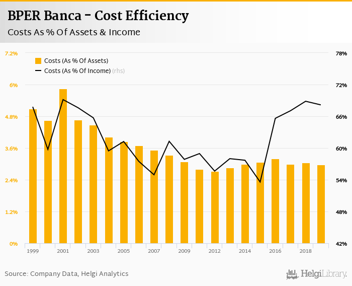 BPER Banca's cost to income ratio reached 68.2% in 2019, down from 68.8% compared to the previous year.