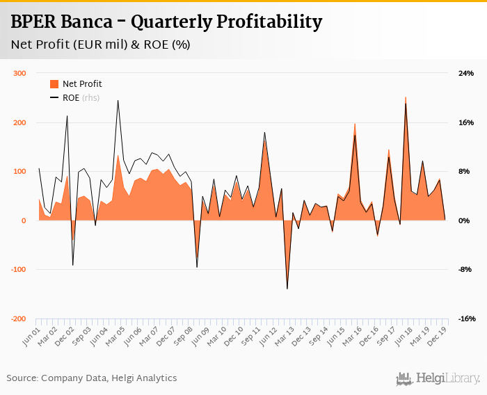 BPER Banca made a net profit of EUR 0.741 mil in the fourth quarter of 2019, down 99.4% when compared to the same period of last year. This implies a return on equity of 0.055%.