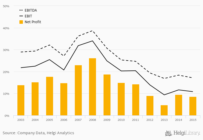 On the operating level, the EBITDA margin reached 17.1% and EBIT amounted to 10.8% of sales in 2015.