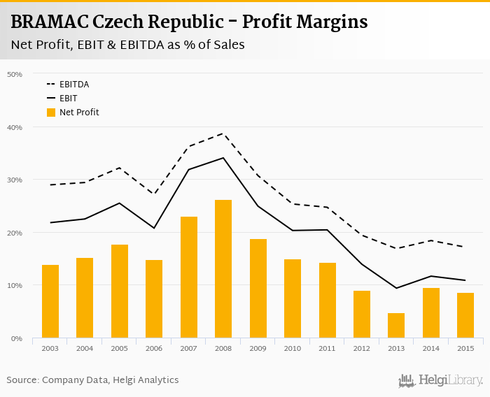 BRAMAC Czech Republic made a net profit of CZK 47.8 mil with revenues of CZK 555 mil in 2015, down by 15.2% and down by 6.42%, respectively, compared to the previous year.