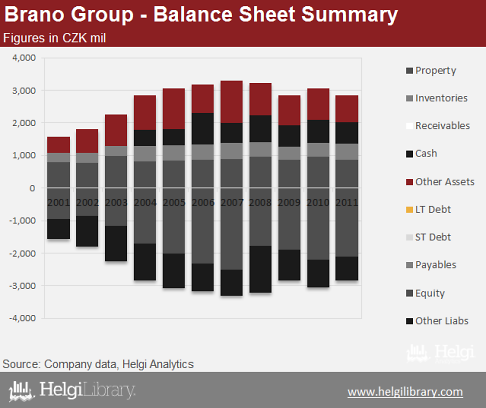 Despite still being 12% off the peak in 2007, sales has been growing in the last three years. In 2011, they reached nearly CZK 3.7 bil. Net profit amounted to CZK 88 mil in 2011, which is 36% below the average seen in the last decade