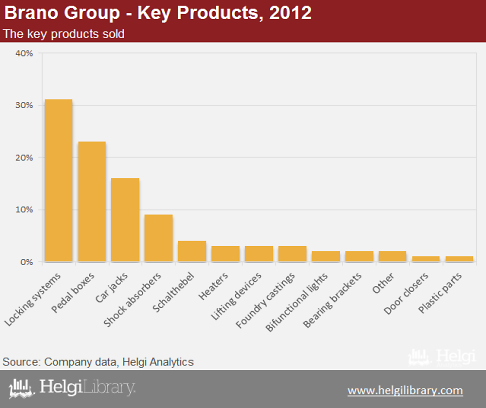Brano's product portfolio is pretty concentrated. Locking systems and pedal boxes represented 54% of total Company's sales in 2012