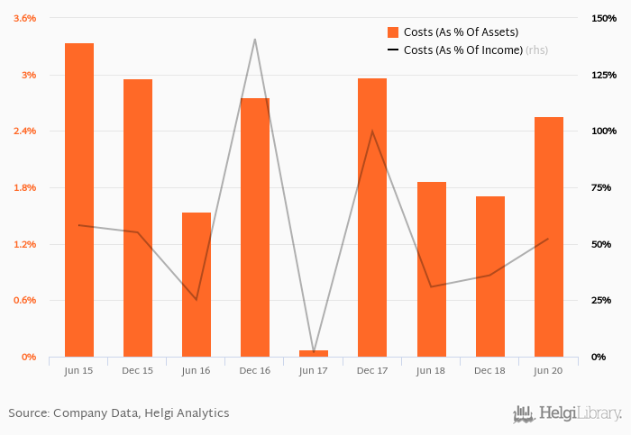 When compared to total assets, bank's cost amounted to 2.55% in 2Q2020, down from in the previous quarter.