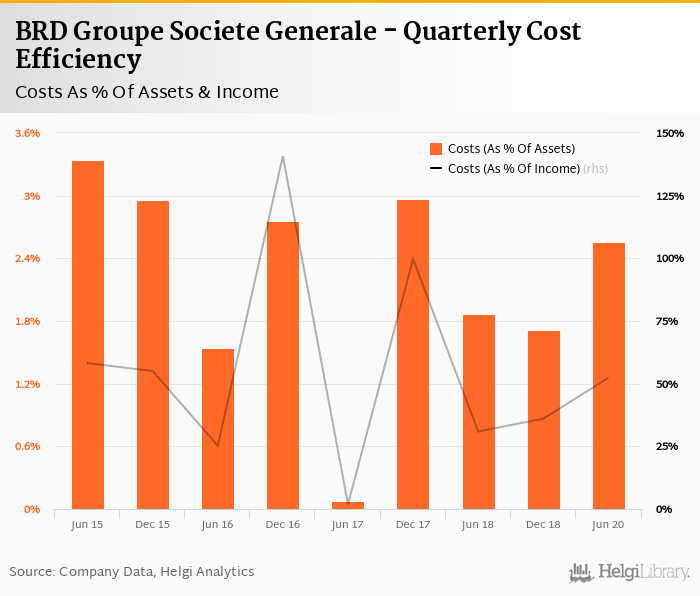 BRD Groupe Societe Generale's cost to income ratio reached 52.3% in the second quarter of 2020, down from when compared to the previous quarter.