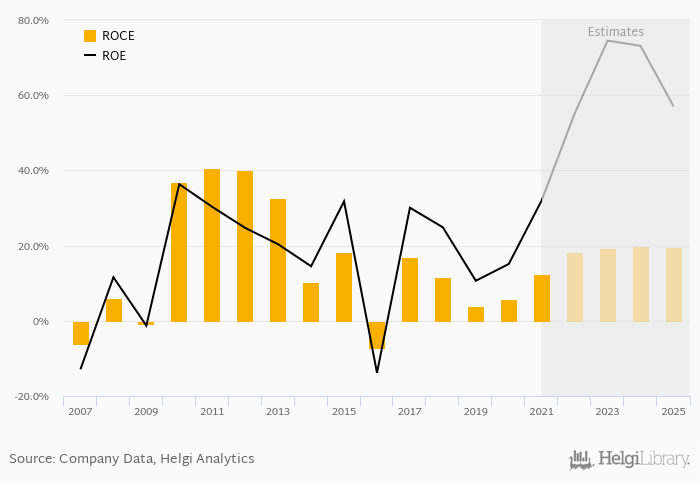 The result implies a return on equity of 32.1% and a return on invested capital of 12.4% in 2021. That is compared to an average of 22.5% and 10.1% over the last five years.