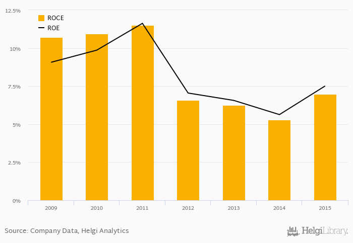The result implies a return on equity of 7.51% and a return on invested capital of 6.97% in 2015. That is compared to an average of 7.67% and 7.32% over the last five years.