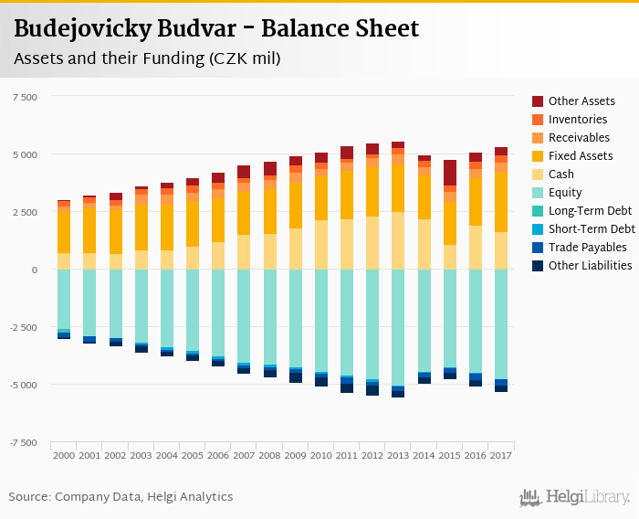 Budejovicky Budvar's total assets reached CZK 5,328 mil at the end of 2017, up 4.56% compared to the previous year.