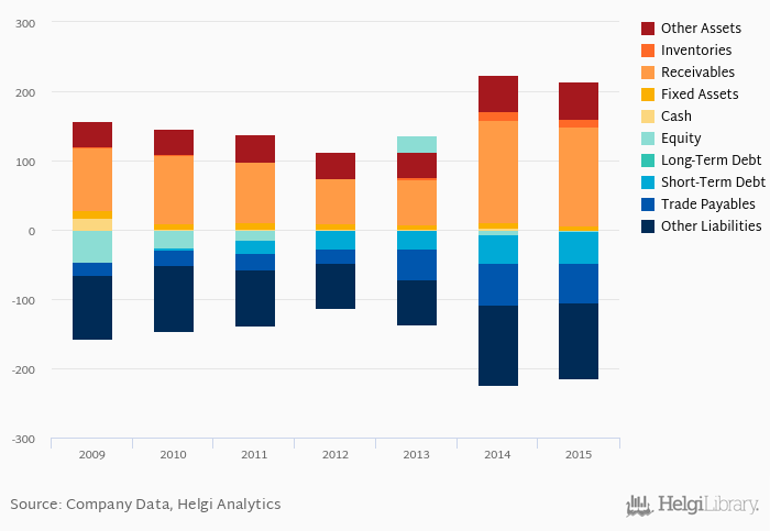 Net debt against equity is up 45.3 pp from five years ago (0.150). The ratio against EBITDA increased from 4.37x seen in 2010 to 27.1x.