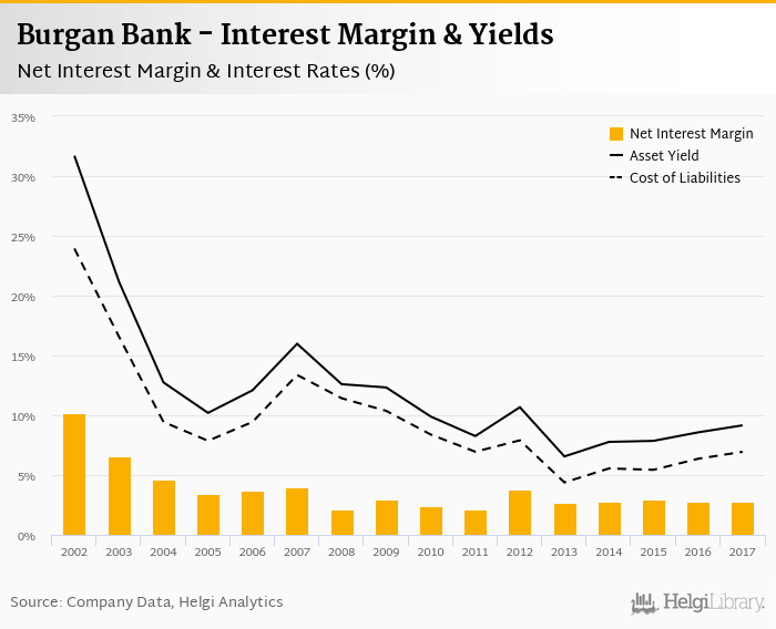 Historically, the bank’s net interest margin reached an all time high of 10.2% in 2002 and an all time low of 2.13% in 2011. The average margin in the last five years amounted to 2.79%.