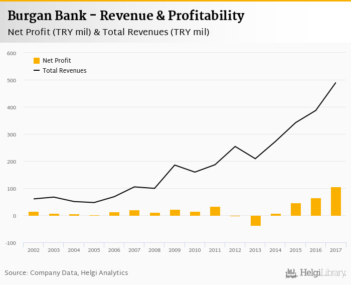Burgan Bank made a net profit of TRY 106 mil under revenues of TRY 490 mil in 2017, up 62.4% and 26.8% respectively compared to the previous year.