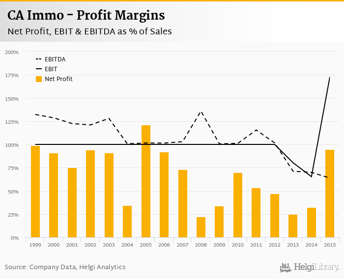 On the operating level, the EBITDA margin reached 63.8% and EBIT amounted to 173% of sales in 2015.