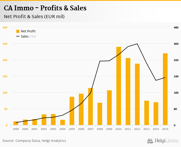 CA Immo made a net profit of EUR 221 mil in 2015, up 212% compared to the previous year. Total sales reached EUR 233 mil, which is up 6.4% when compared to the previous year.