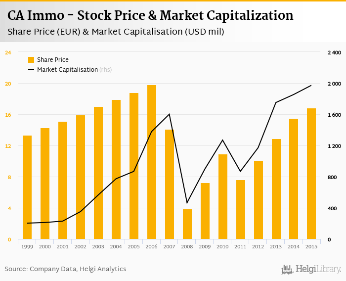 CA Immo stock traded at EUR 16.8 per share at the end 2015 implying a market capitalization of USD 1,972 mil.