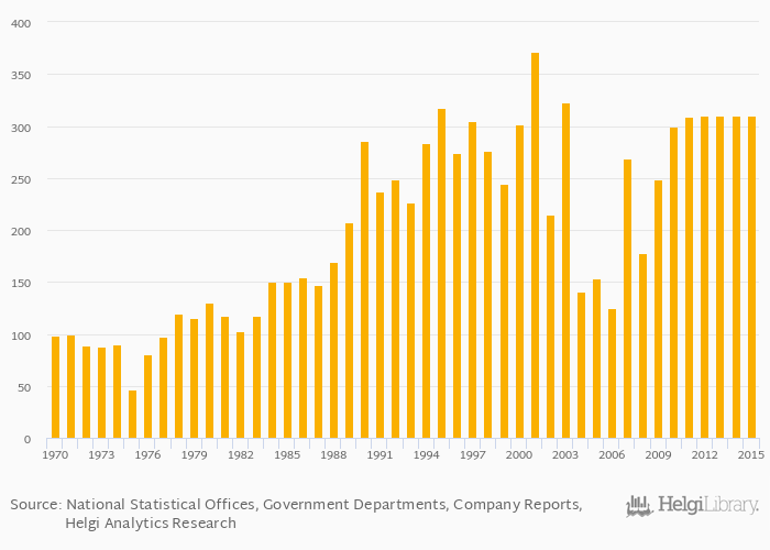 Historically, cadmium production in Norway reached an all time high of 371 tonnes in 2001 and an all time low of 47.0 tonnes in 1975.