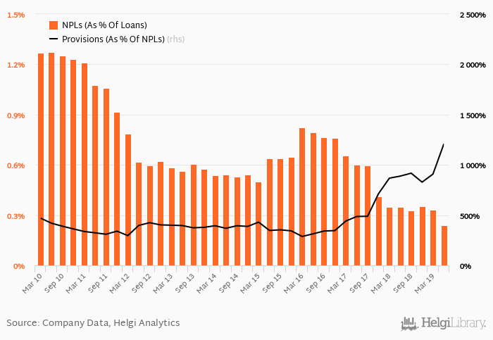 The bank created loan loss provisions worth of 2.27% of average loans in 2019-06-30. That's compared to 2.45% of loans the bank put aside to its cost on average in the last five years.