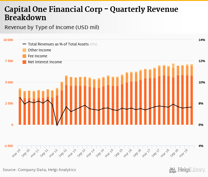 Capital One Financial Corp generated total banking revenues of USD 7,124 mil in the second quarter of 2019, down 0.945% when compared to the same period of last year and up 0.579% when compared to the previous quarter.