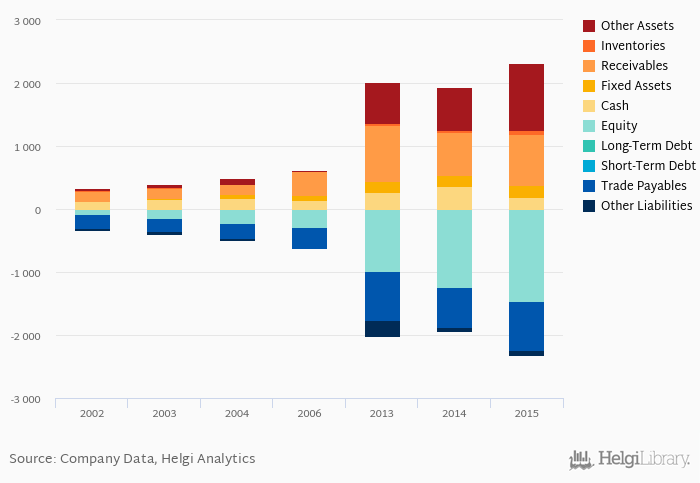 Net debt against equity is up 0.238 pp from five years ago (-0.366). The ratio against EBITDA decreased from -1.02x seen in 2010 to -1.27x.