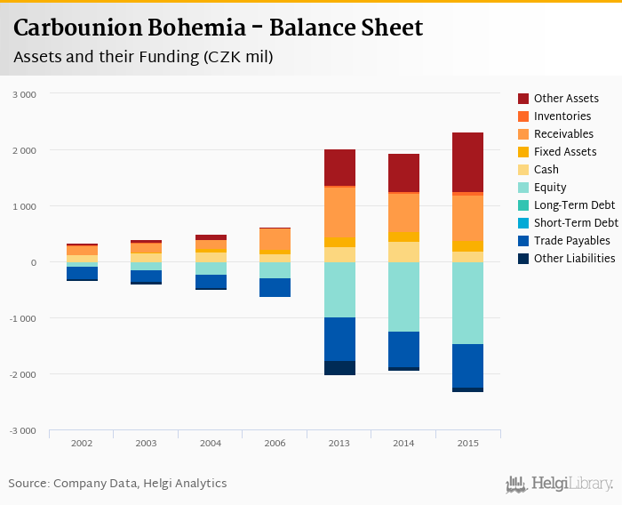 Carbounion Bohemia's total assets reached CZK 2,310 mil at the end of 2015, up 19.3% compared to the previous year.