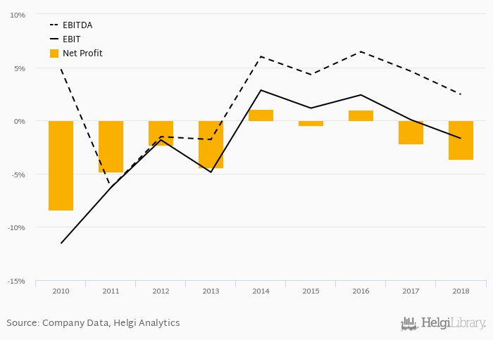 On the operating level, the EBITDA margin reached 2.46% and EBIT amounted to -1.68% of sales in 2018.