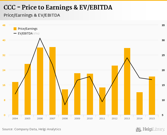 CCC stock traded at PLN 139 per share at the end 2015 translating into a market capitalization of USD 1,364 mil.
