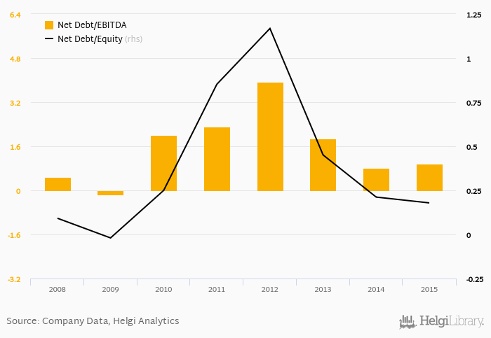 Historically, the firm’s net debt to equity reached a high of 1.17 in 2012 and a low of -0.020 in 2009 between 2007 and 2015. The average for the last five years was 0.572%.
