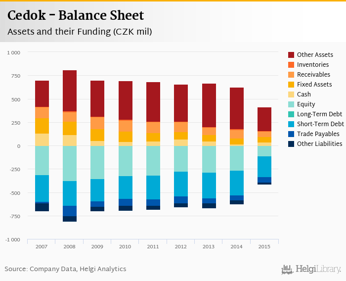 Cedok's total assets reached CZK 414 mil at the end of 2015, down 33.9% compared to the previous year.