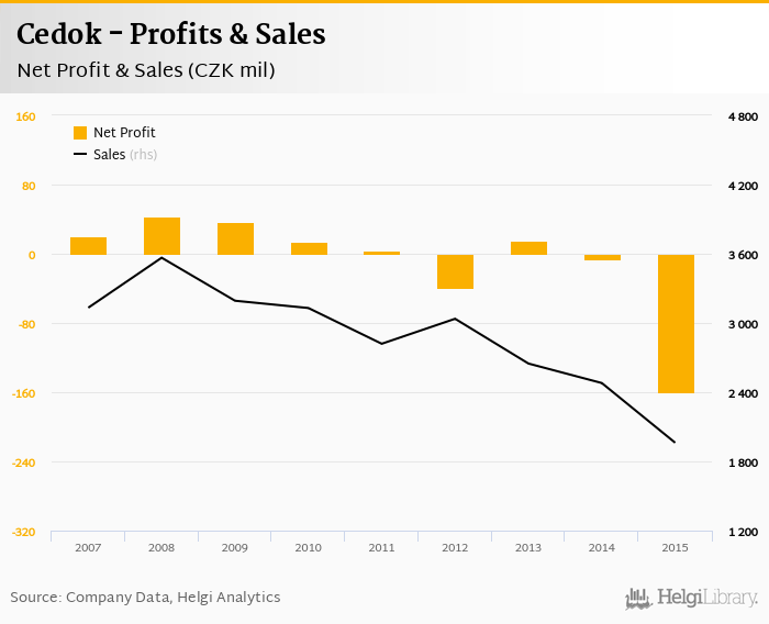 Cedok made a net profit of CZK -161 mil in 2015, down 2% compared to the previous year. Total sales reached CZK 1,962 mil, which is down 20.9% when compared to the previous year.