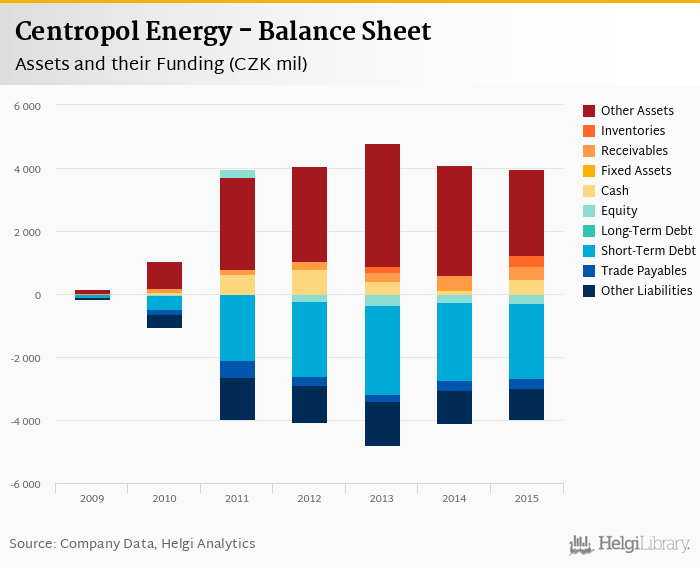 Centropol Energy's total assets reached CZK 3,984 mil at the end of 2015, down 2.46% compared to the previous year.