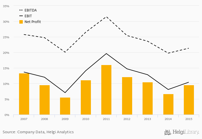 On the operating level, the EBITDA margin reached 21.3% and EBIT amounted to 10.4% of sales in 2015.