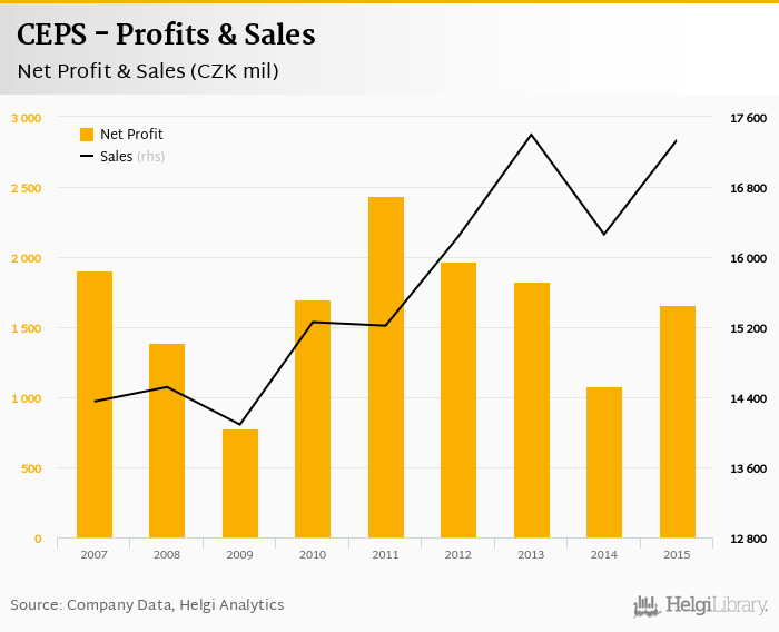 CEPS made a net profit of CZK 1,658 mil in 2015, up 53.7% compared to the previous year. Total sales reached CZK 17,336 mil, which is up 6.62% when compared to the previous year.
