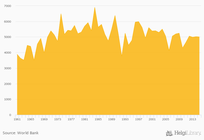 Cereal production fell 0.352% to 5,003 kt in Sweden in 2015, according to Faostat.