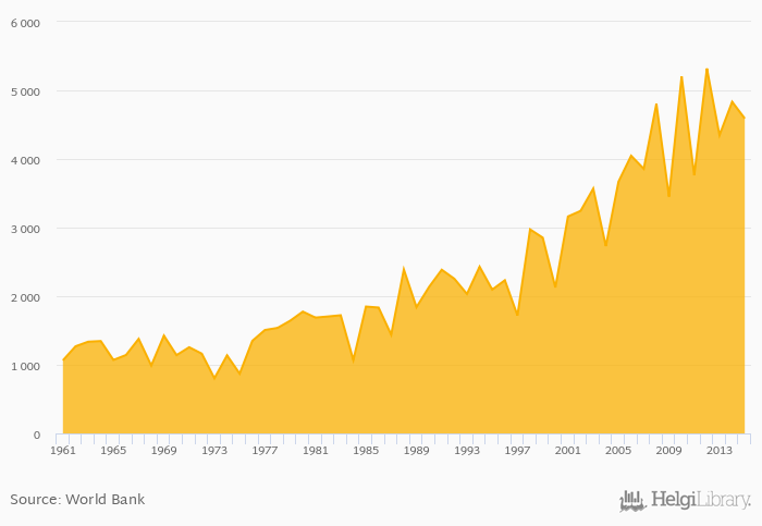 | Chad | kt | 2,088 | 2,150 | 1,553 | 3,162 | 2,561 | ||||||||||||||||