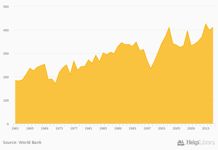 Cereal production rose 3.40% to 411 kt in Panama in 2015, according to Faostat.